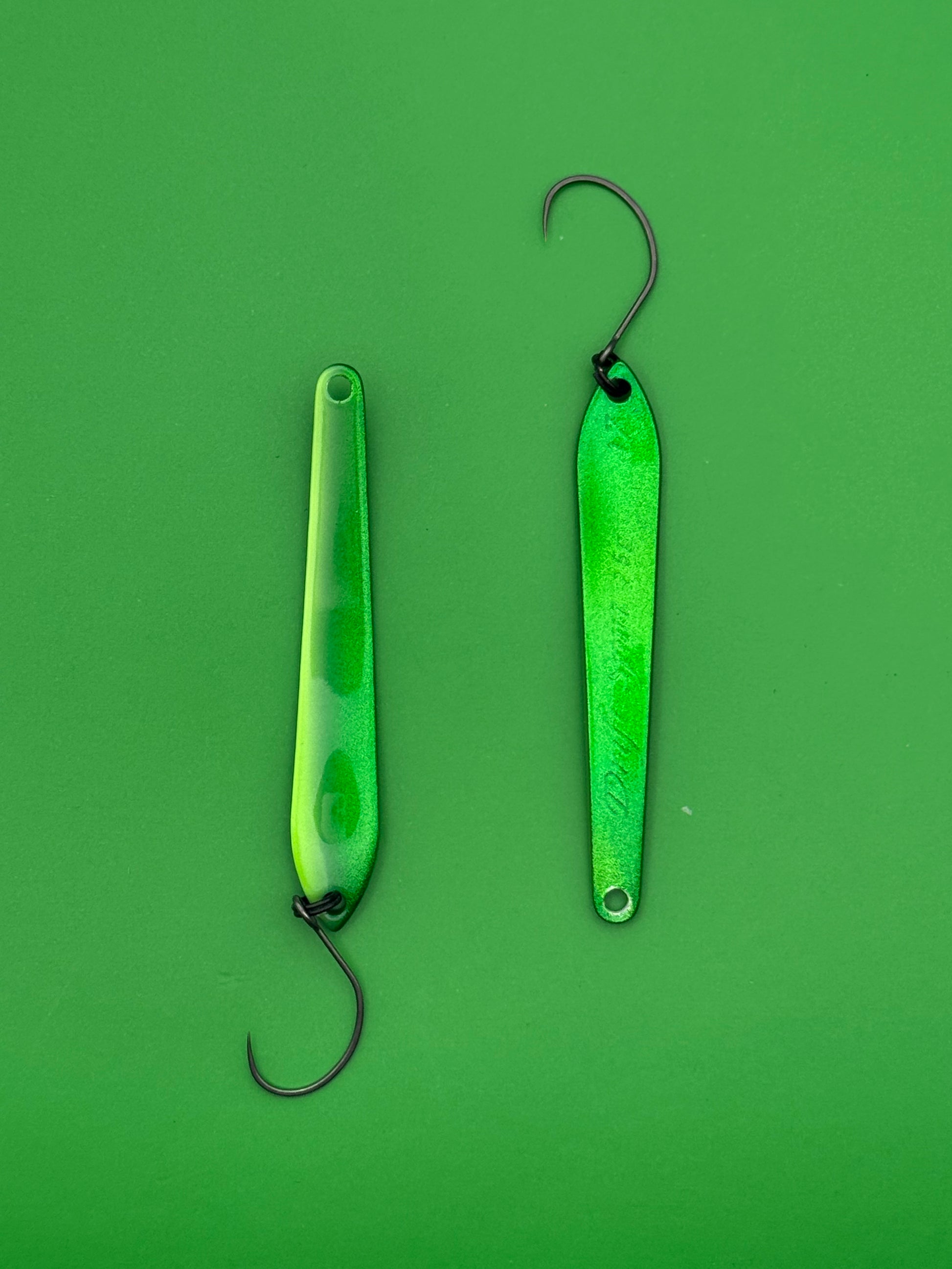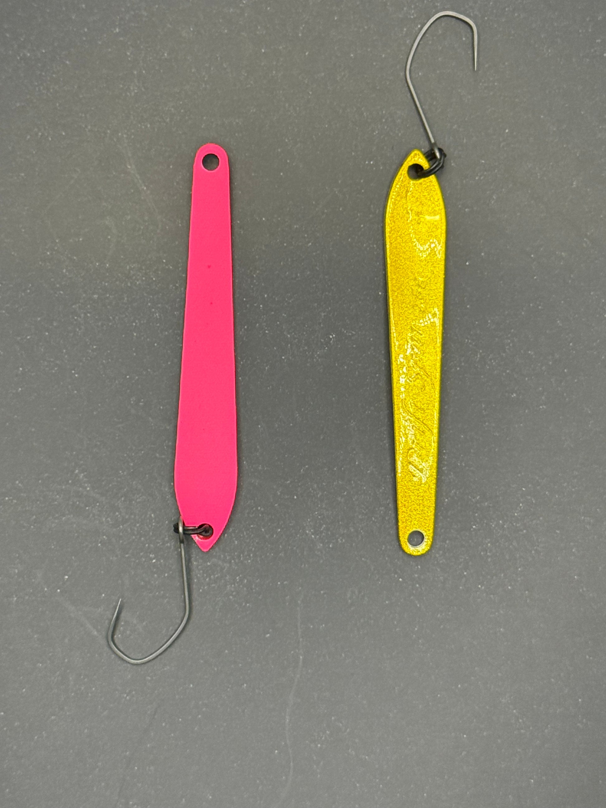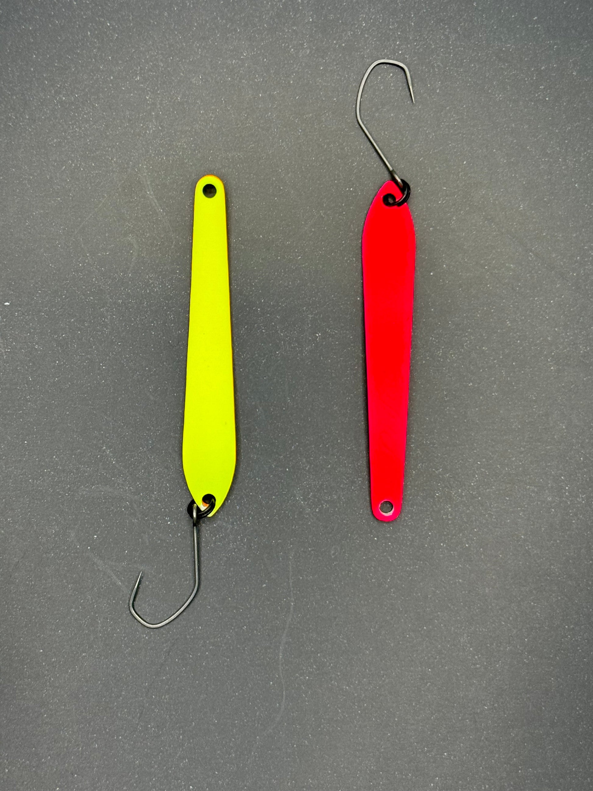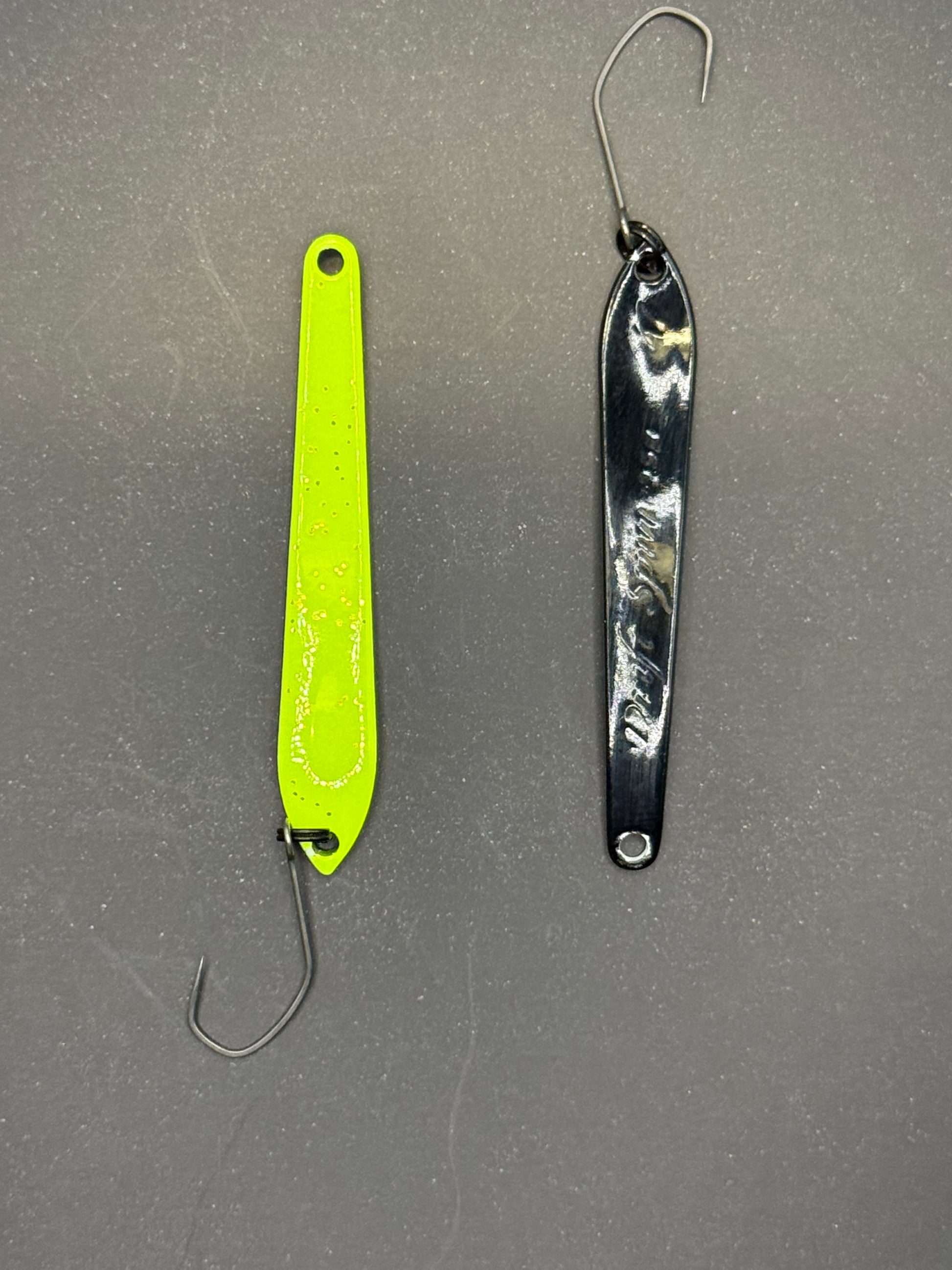 DS Spoon 2,5 g (47 mm) – et unikt blink med smalt design og stabil gang. Skaber lette vibrationer uden kraftig wobbling og trigger effektivt selv passiv ørred. Fungerer bedst ved langsom indspinning med korte pauser.